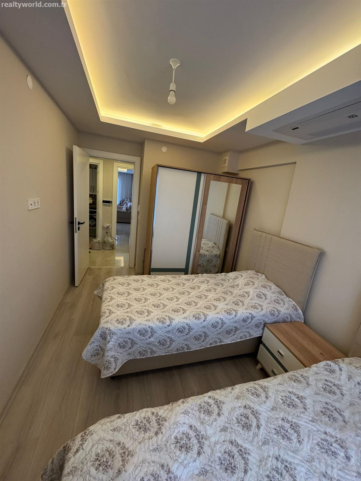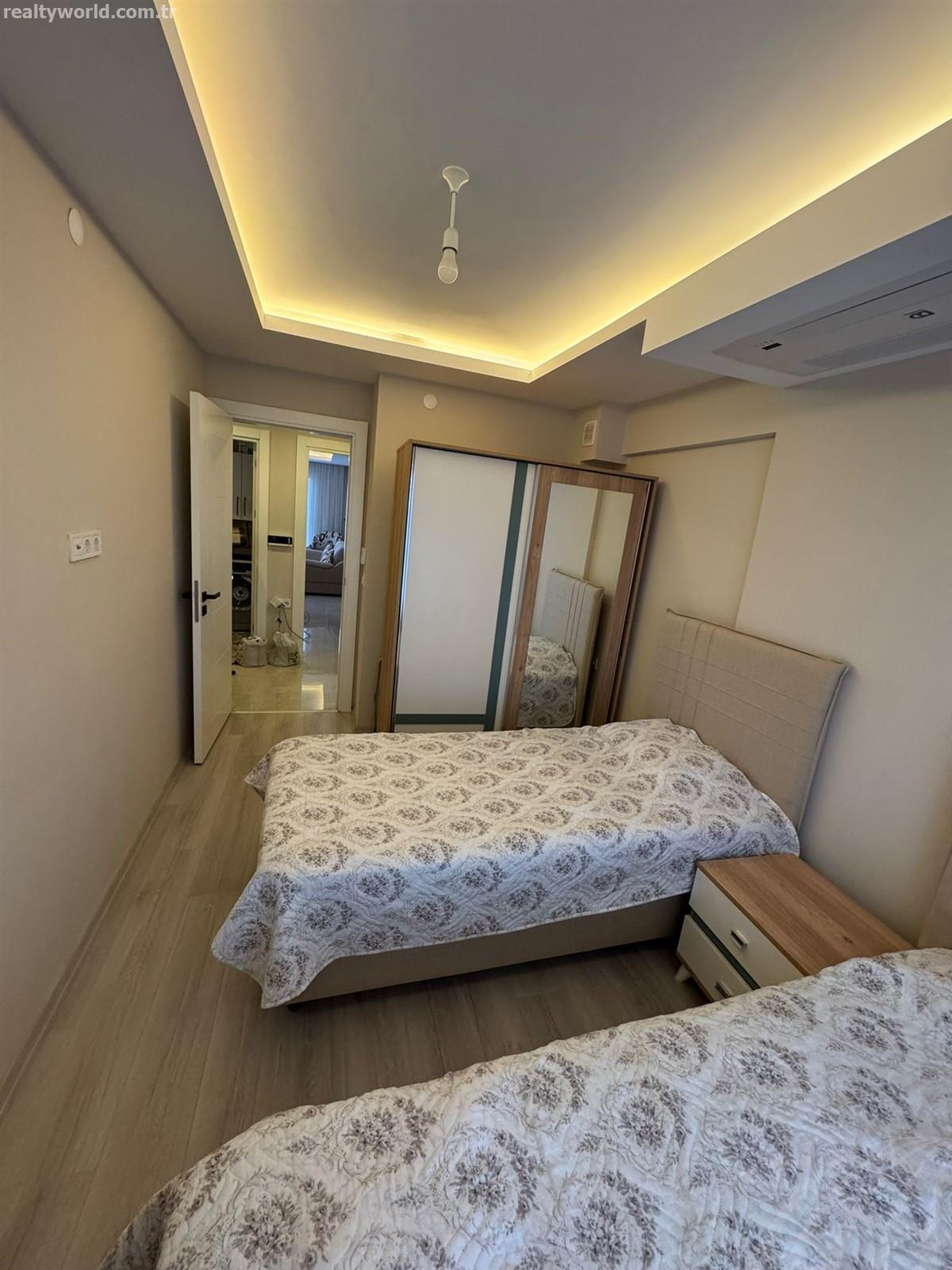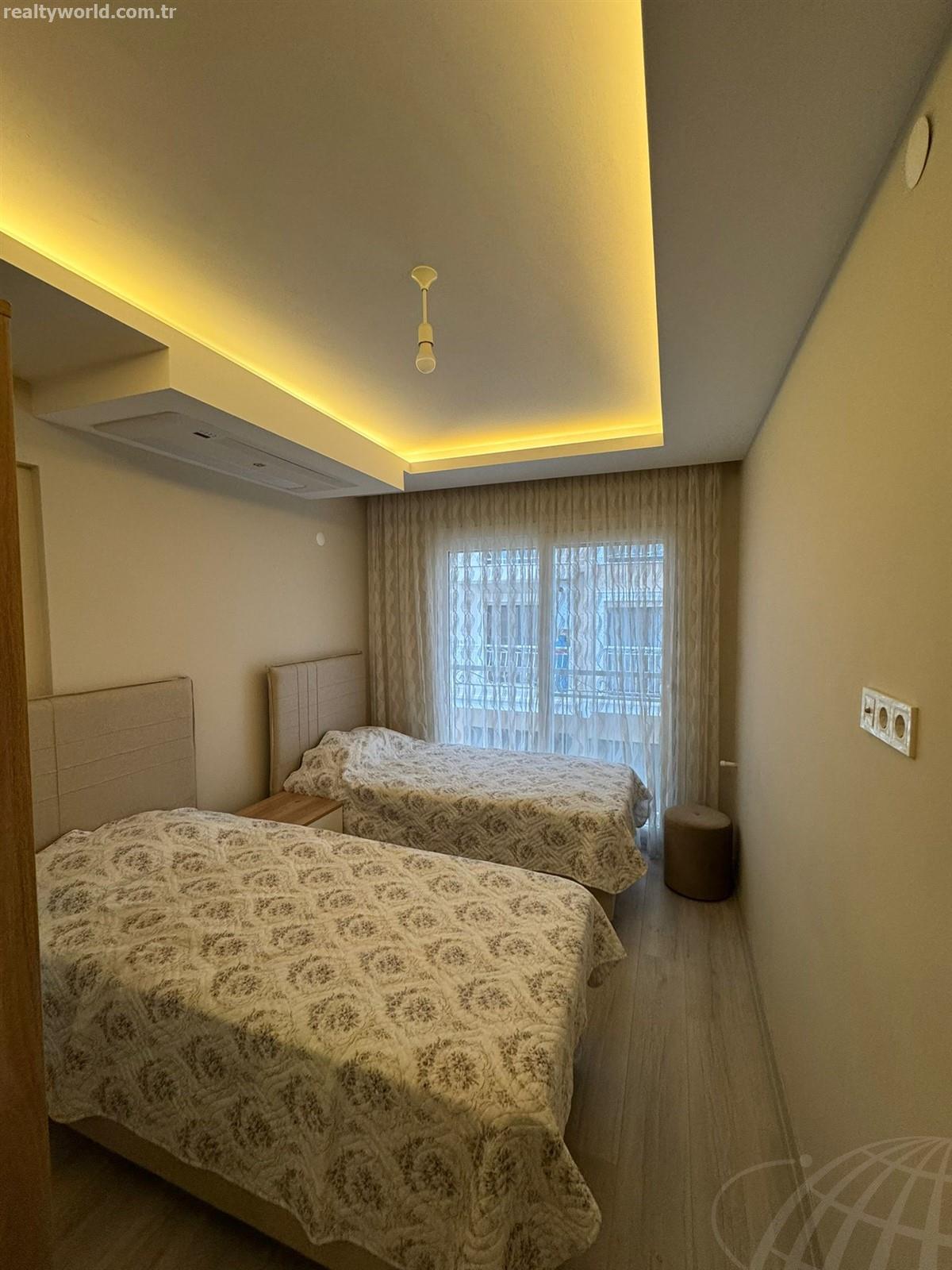 Davutlar merkezine ve muhteşem sahile yakın konumuyla dikkat çeken dairemiz, hem günlük yaşamın kolaylıklarına hem de tatil keyfine kolay erişim imkanı sunuyor. 90 m² net kullanım alanına sahip olan bu ferah daire, özel mimari iç cephe tasarımıyla da estetik bir görünüme sahip.